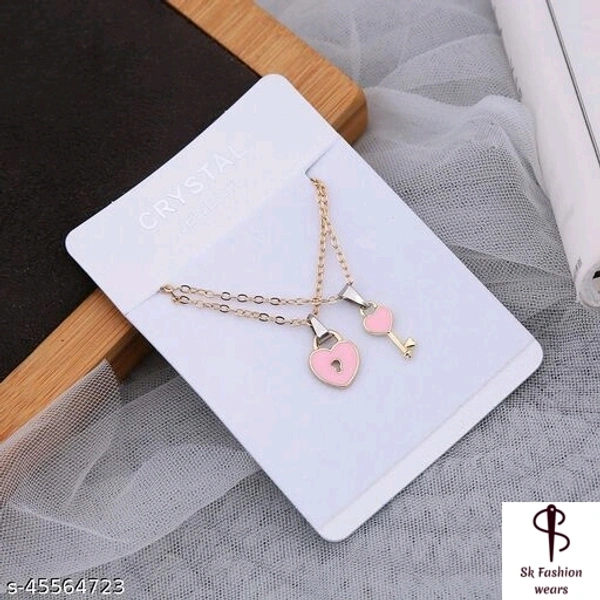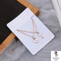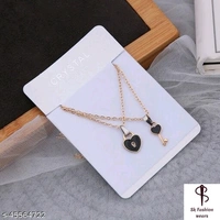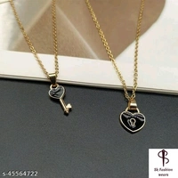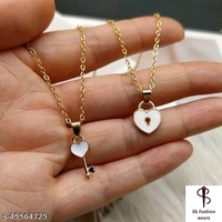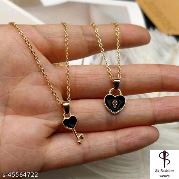 Arzonai One pair of couple necklace simple fashion small key lock love pendant golden clavicle chain necklace gift
